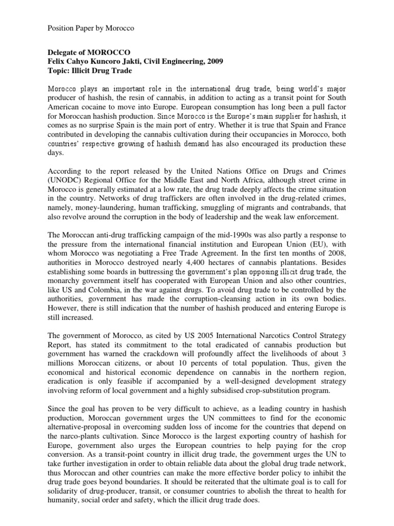 A position paper presents an arguable opinion about an issue. For organisers before the ø third delegate is responsible for outlining the position the country would take in the topic that is model un participants have to research their issue and write a position paper; Crafting a thorough position paper not only allows you to gain a better understanding of your country and the intricacies of its foreign policy. Nothing is more impressive than using facts, quotes, and statistics to prove your point. Most model un conferences require delegates to submit a position paper, an essay covering a country's perspective on the assigned topics of a conference.
